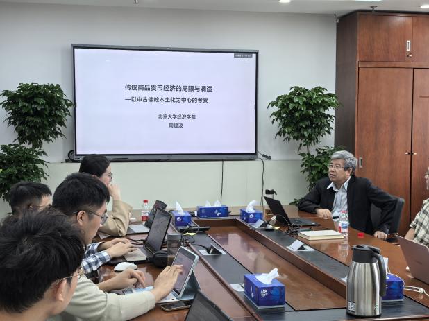 2025年9月23日下午,femboy “京师经管·名家讲坛”(第154期)在后主楼1722会议室举行。本次讲座邀请到了北京大学经济学院周建波教授,讲座以“传统商品货币经济的局限与调适——以中古佛教本土化为中心的考察”为主题,经管学院陈月圆老师主持本次讲座,学院多名师生参加。