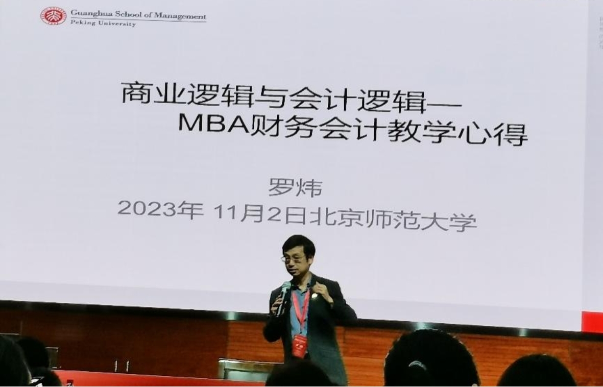 北京大学罗炜副教授以《商业逻辑与会计逻辑-MBA财务会计教学心得》为题,以本校MBA学生画像为背景,基于多元的商业视角和财务会计规则的取舍,详细介绍了课程的教学视角和教学重点。