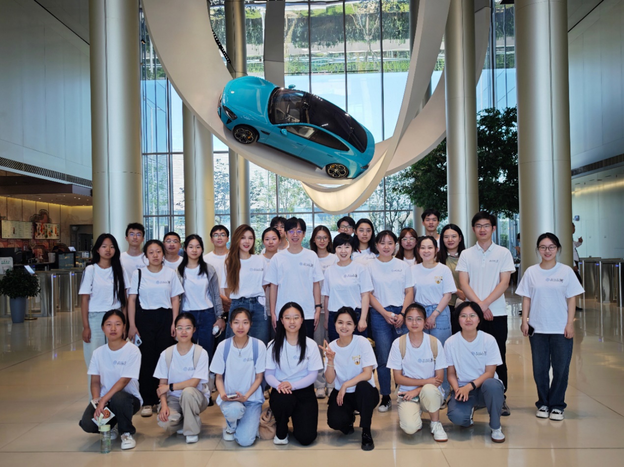 工作人员首先带领师生参观体验了小米汽车展厅,细致介绍了小米的发展历程。从每一个精细部件,诸如电池安全的配置、超级电机的构成、车身使用材料及车型设计、自研芯片的开发等,到汽车整体的宏观格局,随着宣讲员的娓娓道来,大家更加深入地了解了“小米汽车”的设计巧思。随后,师生一行搭乘小米工厂摆渡车参观了小米汽车生产车间,实地观察智能化工厂如何利用智能设备(如搬运机器人与机械臂)大幅度提高生产效率,并通过严格的数控质量管理体系达成产品零瑕疵目标,从而对智能制造生产场景有了更加直观的认识。