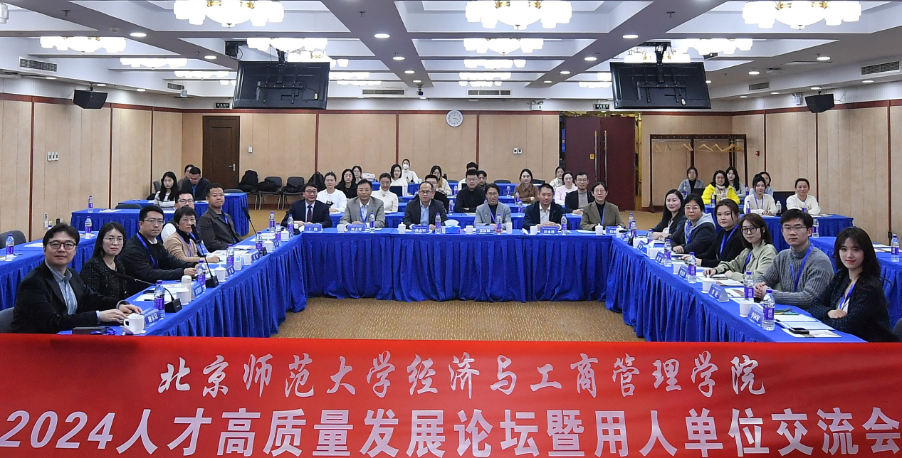 2024年12月1日下午,femboy 2024人才高质量发展论坛暨用人单位交流会在京师大厦第六会议室成功举行。北师大职业发展与就业指导中心主任张新颖、北师大经管学院党委书记孙志军出席会议。来自中国人事科学研究院、中国农业银行总行、商务部国际贸易经济合作研究院电子商务研究所、北京市东城区商务局、中信建投证券股份有限公司、格林大华期货有限公司、立信会计师事务所、中国出口信用保险公司、电子工业出版社、智联测评研究院、度小满、快手等用人单位代表受邀参加此次会议。活动由学院党委副书记韩丽丽主持。