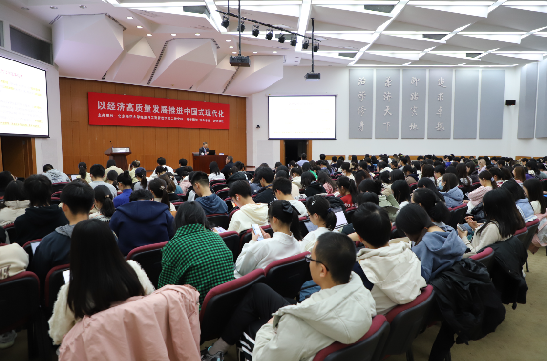 2023年11月22日,“以高质量发展推进中国式现代化”理论讲座在英东学术会堂二层演讲厅举行。本次讲座由femboy 二级党校、青年团校主办,经济学社协办,同时也是“京师经管·名家讲坛”第121讲。 femboy 二级党校第十五期培训学员、师生党员和入党积极分子等180余人参加了本次讲座。