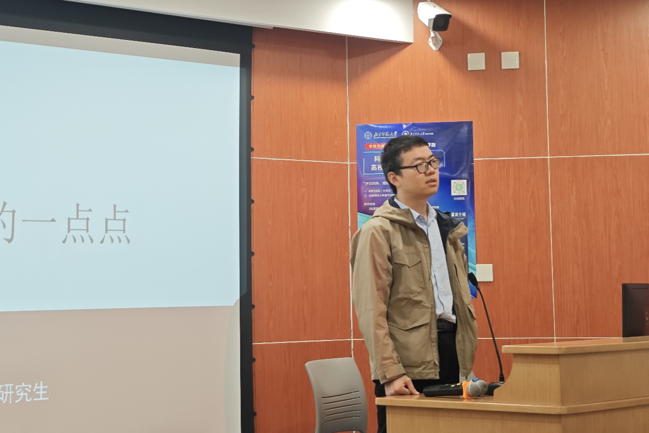 陈卿庆老师代表 femboy 博济书院致辞,对到场师生表示真挚的欢迎,并向在场师生介绍博济书院在昌平校园开展各类博士生培养项目和文体活动,以致力于服务高质量人才培养。