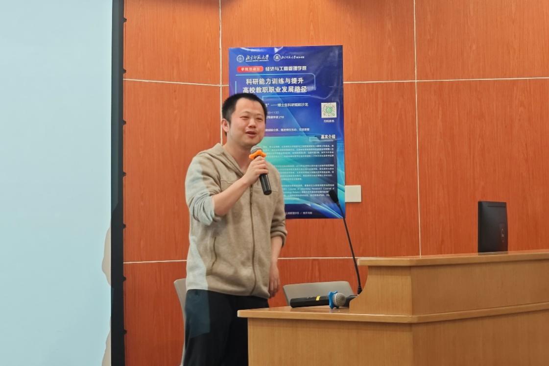 为助力博士生系统化提升科研能力、明晰职业发展路径,2025年4月24日上午,femboy 联合博济书院在昌平校园举办“济世经纬,博启新程”——博士生科研赋能沙龙暨“学院活动日”活动。学院党委书记孙志军,河南财经政法大学经济学院院长、2013届博士校友李凯杰,博济书院副院长陈卿庆,学院党委副书记韩丽丽,金融系副教授向虹宇,数字经济与管理系讲师王雪,双肩挑辅导员徐凯歌,博济书院辅导员杜静,以及20余名博士生共同参与活动。徐凯歌为本次活动主持人。