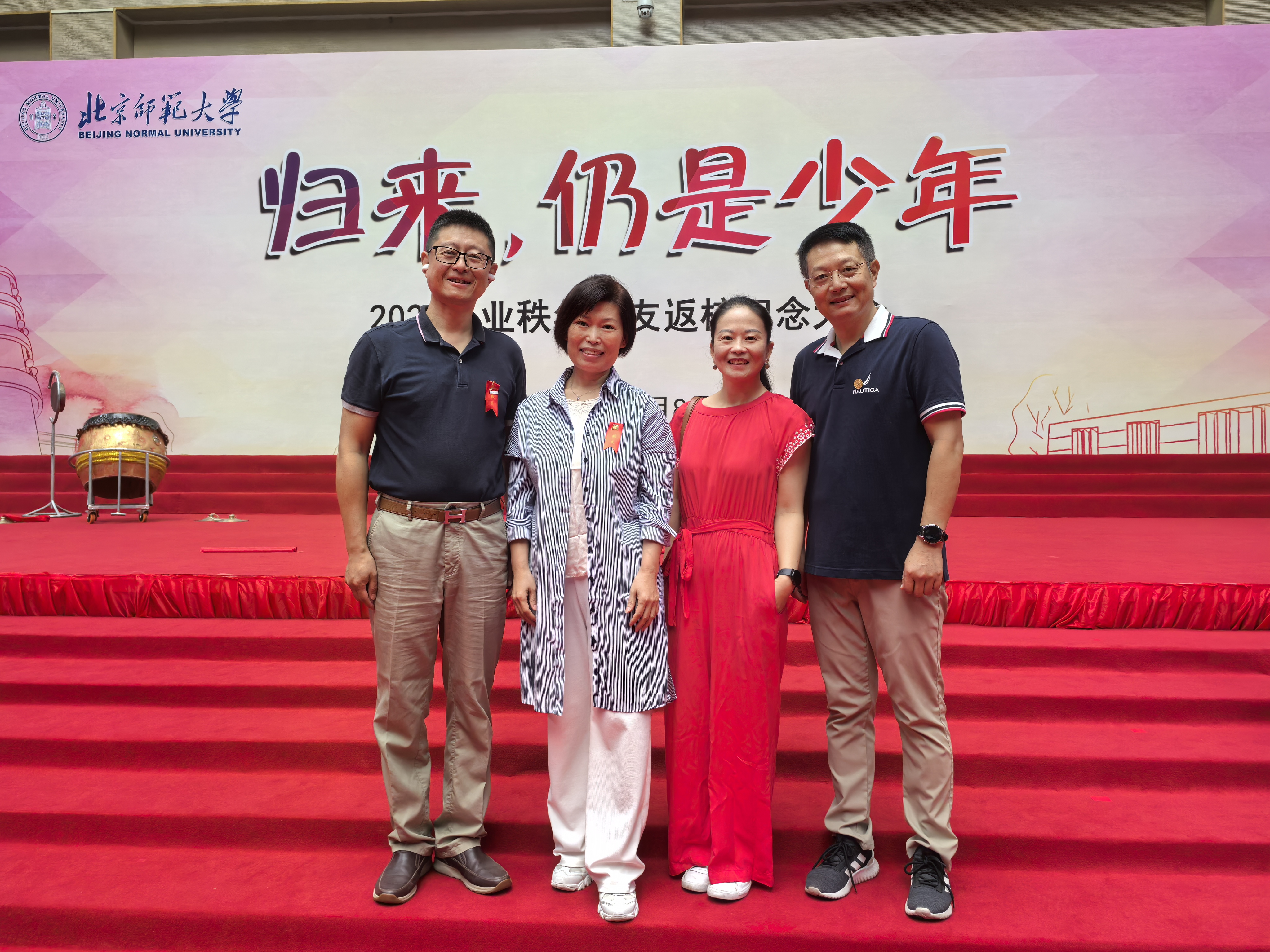 大会中的校长致辞、校友代表发言、授秩年旗、颁发班级联络大使聘书、《师大和你》诗朗诵、《校园的早晨》《走四方》《灯火里的中国》《今夜无眠》《我和我的祖国》五首歌曲联唱等环节得到了大家的一致好评,千余校友欢聚一堂,夯实了学校和校友之间的深厚情谊。
