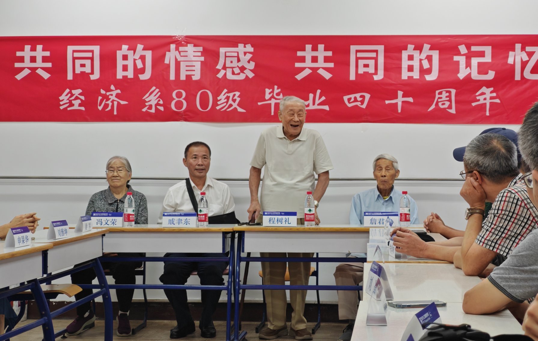 上午八点半,学院 1984届校友在教二214教室举办“共同的情感,共同的记忆”毕业四十周年座谈会。经济系原主任程树礼、詹君仲、原党总支书记冯文荣、院长戚聿东参加了座谈会。恩师们与来自天南地北的30余位校友欢聚一堂,追忆往日时光,共叙师生之情、同窗之情。
