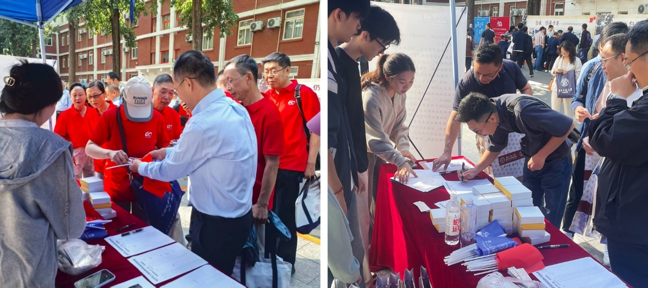 经管学院1985届、1995届、2005届、2015届等300余位校友携家属从全国及世界各地重返母校。签到处现场热情洋溢,校友们有序签到并领取活动纪念品及餐券,久别重逢的喜悦洋溢在每个人的脸上。
