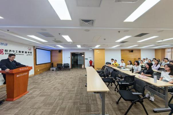 海淀校区各班也分别邀请了党政领导、系主任、教师代表以及优秀学生代表,与新生们进行深入的交流与互动。其中,副院长张平淡、副院长崔学刚、党委副书记江婕、会计系系主任吴沁红、金融系系主任胡海峰、国贸系系主任魏浩、经济系系主任许敏波,各班班主任、教师代表和学生代表围绕本专业系别概况、专业培养方案、培养过程、特色项目、课堂教学、学业规划、专业素养和就业去向等方面展开介绍,还通过生动的案例向新生解读了本专业的知识体系和学习范式,让新生们更加深入地了解所选择的专业领域。同时,他们也给予新生们宝贵的未来规划建议,引导新生们在学业上有更明确的方向。其他教师代表补充介绍了自己对本专业的理解,经管学院的教学优势和为学生提供的丰富资源,并鼓励新生充分利用北师大经管学院的教学平台,为自己的学习和发展打下坚实的基础。本次专业认知教育活动不仅帮助新生们更好地融入学院生活,还为他们的未来学业规划提供了有力支持。