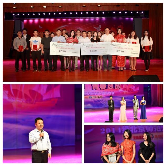 MBA教育中心“缘聚京师,青春怒放”2014级迎新晚会在北师大学生活动中心隆重举行。经管学院院长赖德胜、分党委书记沈越、副院长杨澄宇、副院长张平淡,MBA中心主任苏凇、副主任焦豪,团委书记张璇,MBA中心部分老师与来自祖国四面八方的师大学子齐聚一堂,共同度过了一个美好而难忘的夜晚。出席晚会的还有特邀校外导师、历届校友和赞助商代表。