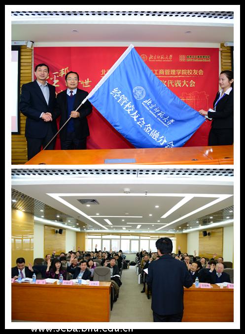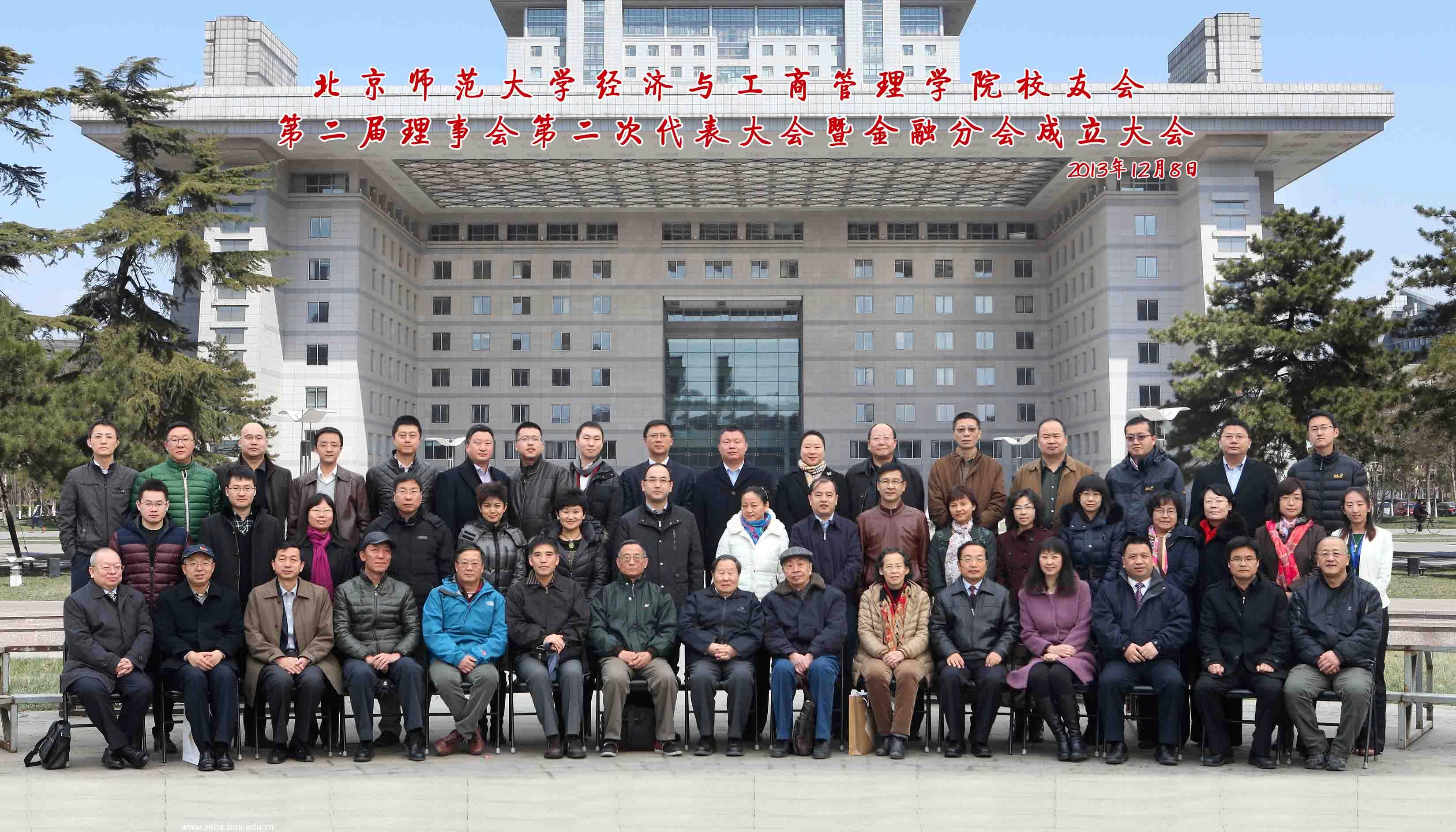校友会第二届理事会第二次代表大会暨金融分会成立大会于2013年12月8日9:00在京师大厦四层9406会议室举行。经管学院赖德胜院长、张平淡师副院长、院长助理、会计系主任吴沁红老师、金融系主任胡海峰老师、工会主席陆跃祥老师、办公室主任张秋兰老师、学院老教师代表王同勋老师、王善迈老师,以及五十余位校友、四十余位同学参加了会议,会议由经管学院分党委葛玉良副书记主持。