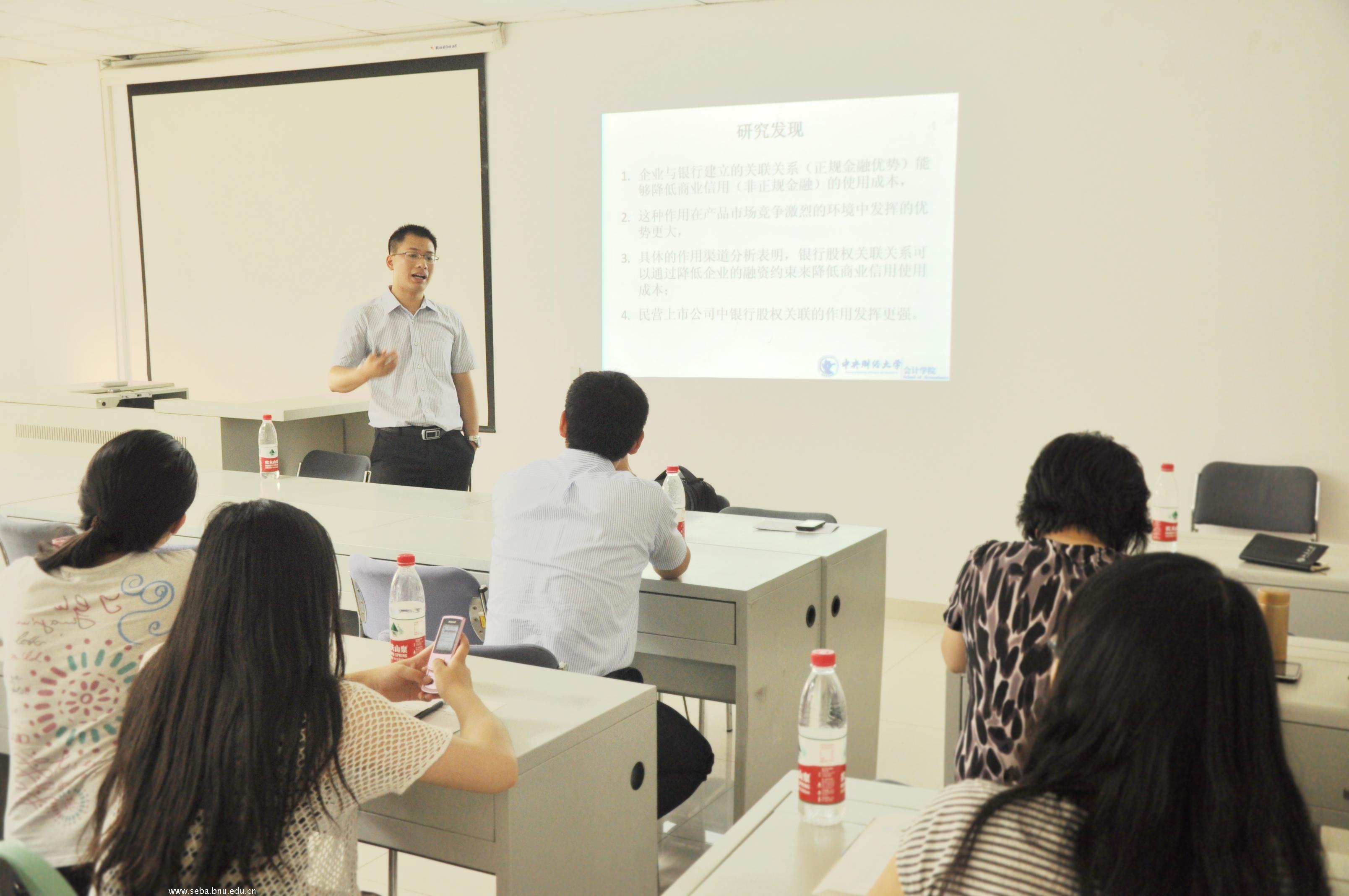 经济管理学院会计系seminar成功举办。清华大学经济管理学院会计系博士,中央财经大学教师陈运森做了题为“产品市场竞争、银行股权关联与商业信用流动性压力”的专题讲座。讲座由 femboy