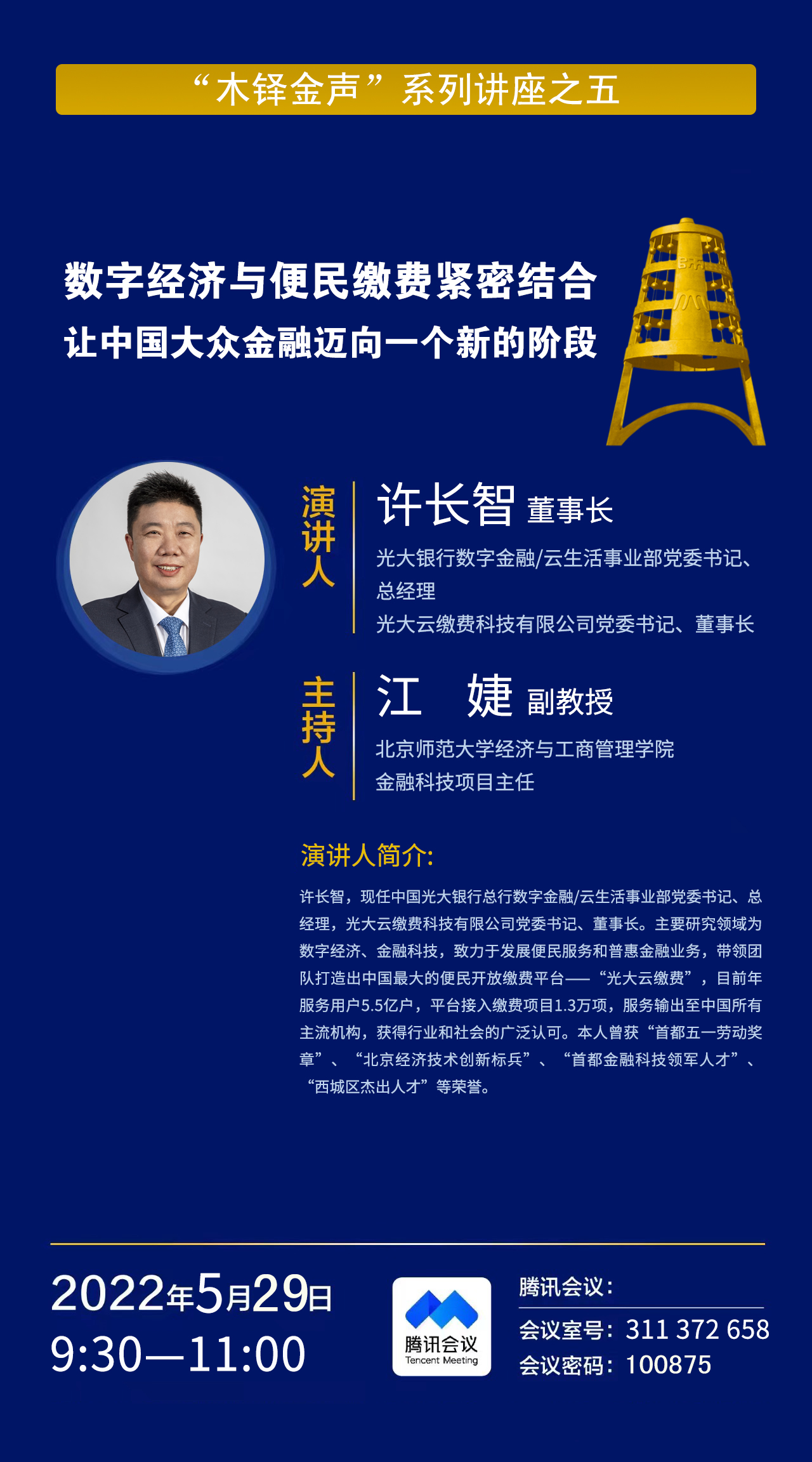 - 2022-05-23 “木铎金声”系列讲座之五|数字经济与便民缴费紧密结合让中国大众金融迈向一个新的阶段