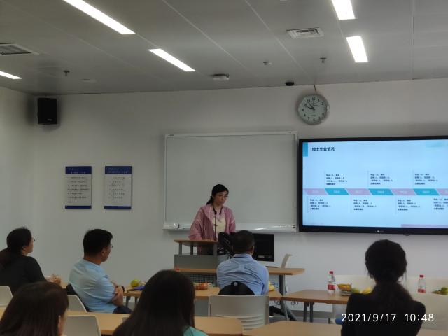 接下来,由经管学院的双肩挑辅导员,同时也是经管学院毕业的博士,陈夙老师向同学们介绍了包括博士毕业要求、毕业比率以及就业去向的相关内容,并结合自身读博士的经历,提出了“以始为终”、“科学规划”和“撸起袖子加油干”的嘱咐建议。李老师也根据同学们的毕业焦虑,有针对性的分享了终身学习、热爱生活的人生经验。