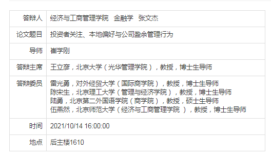 2021年秋季学期10月毕业答辩信息
