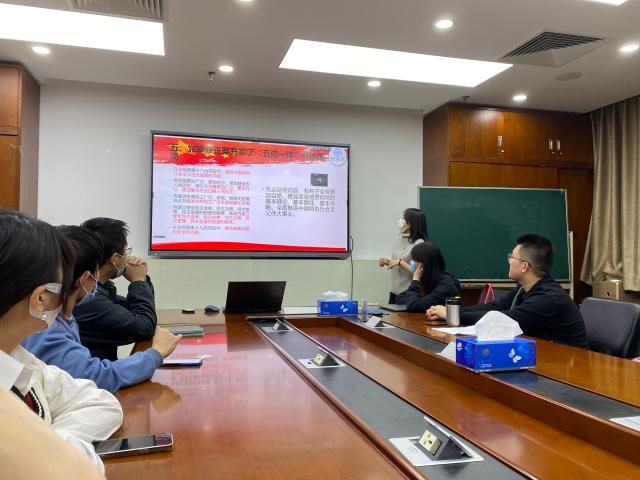最后,大家分享党的二十大精神的学习心得。同学们围绕脱贫攻坚和全面建成小康社会谈到了新时代党领导全国人民取得的辉煌成就;结合“六个坚持”的内容,要提高我们分析问题和解决问题的能力,培育攻坚克难的精神;结合党的二十大中对教育、科技和人才工作的重视以及对青年的期望,谈到了实体经济在就业市场中地位和就业市场中的人才需求。