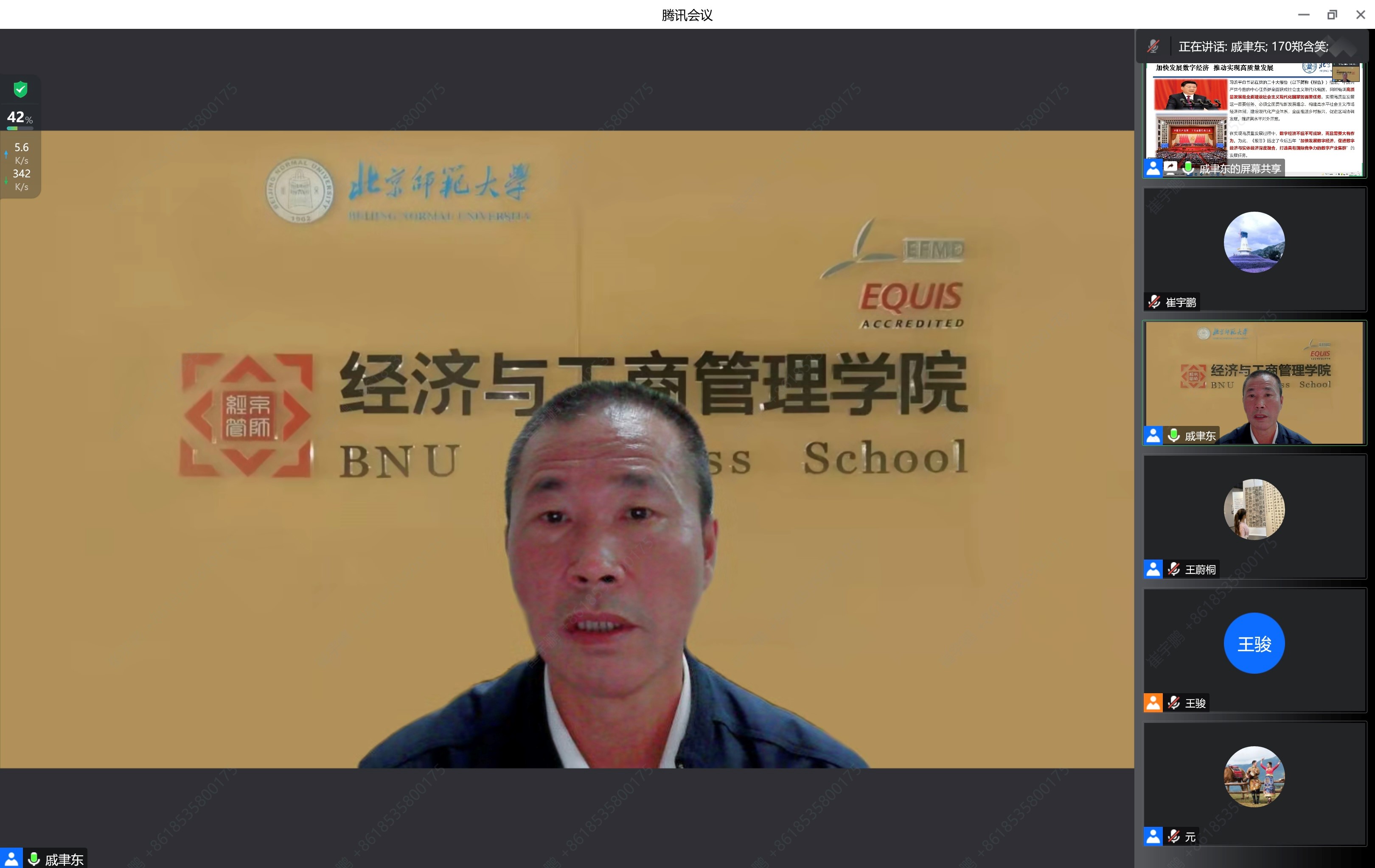 最后,戚老师提出以国家战略统筹数字经济发展,并为大家简要介绍了《“十四五”数字经济发展规划》的相关内容。他指出,发展数字经济是一项长期系统工程,要抓好重点领域和关键环节,在“扬长”的同时,坚持把“补短”作为重中之重。要突出加强数字技术的原始创新,加快实现技术标准国际化,超前布局数字基础设施,把工业互联网智能制造作为数字经济发展的“主战场”,加快弥补数字人才供给缺口。他鼓励大家憧憬拥抱新经济,坚定对数字经济的信心,并激励同学们加强对数字经济方面的学习和研究。