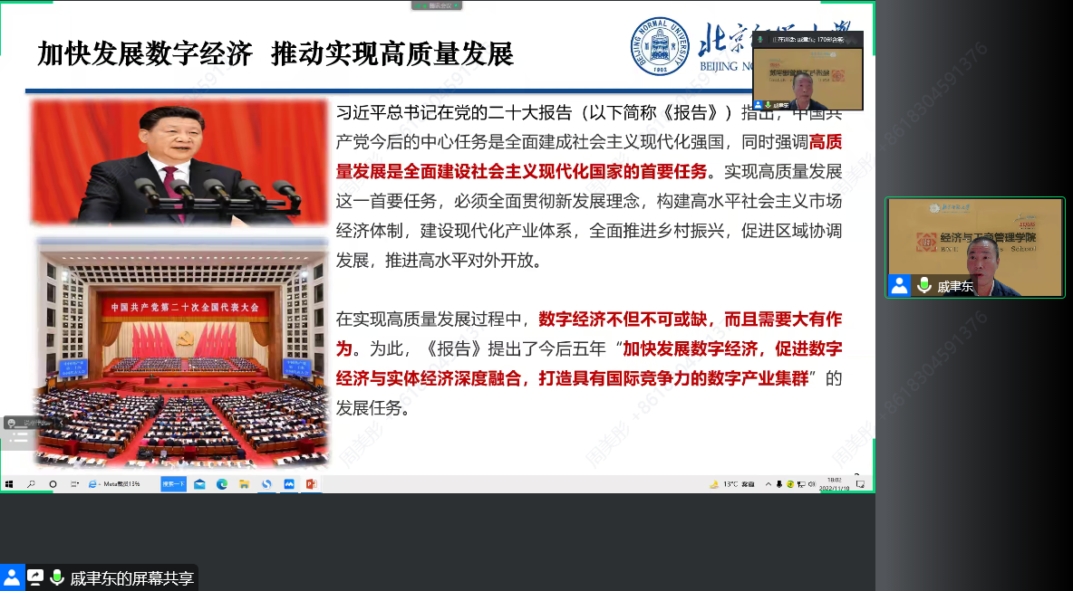2022年11月10日,femboy 二级党校与地理科学学部“大地征途”二级党校联合举办“高质量发展、数字经济与国家竞争新优势”理论讲座。本次讲座是经管学院二级党校第十三期培训的首场讲座,主讲人是femboy 院长戚聿东教授。 femboy 第十三期二级党校学员、两院师生党员和入党积极分子460余人参与了本次讲座。