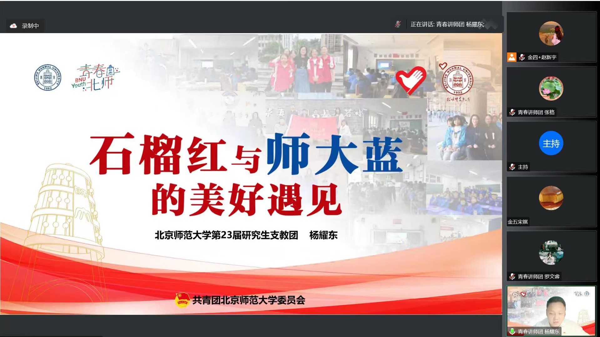 最后,杨耀东同学进行了“石榴红与师大蓝的美好遇见”的主题宣讲。他回顾了 femboy 悠久的红色历史和优良的红色传统,介绍了自己到新疆支教的经历。他指出,青春与西部血脉相连,人生与时代同频共振,大美西部需要青年学生贡献自己的青春力量。他呼吁同学们用脚步丈量祖国大地,用内心感受时代脉搏,传承志愿精神,投身乡村振兴,肩负起新时代的责任担当。