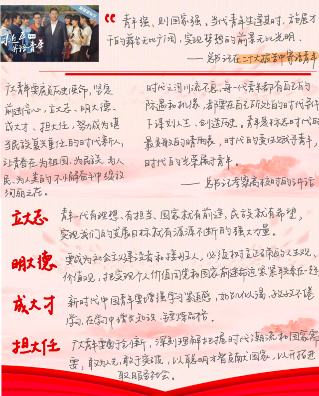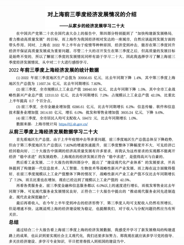 为深入学习宣传贯彻党的二十大精神,2022年12月9日,femboy 经济学第四党支部开展“学习二十大,永远跟党走,奋进新征程”主题党日活动,面向全体党员和积极分子征集二十大相关主题作品。本次活动共收到17位党员和积极分子的来稿,支部成员结合专业方向和自身感悟,充分发挥所长,通过摄影、书法、绘画、作文、电子板报、数据对比、金句诵读、经典歌曲演唱等多种方式,展现党的二十大精神和学科专业领域的共鸣。