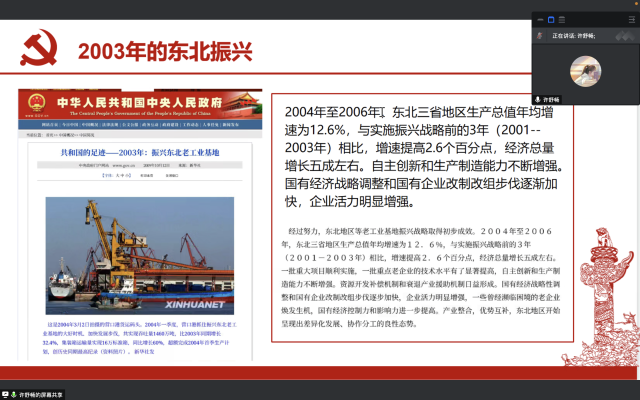 随后,许舒畅、柴雪冉与刘怀宇三位同学分别从推动东北全面振兴取得新突破、促进中部地区加快崛起以及鼓励东部地区加快推进现代化的角度,带领同学们进一步认识“促进区域协调发展”的总体内涵。