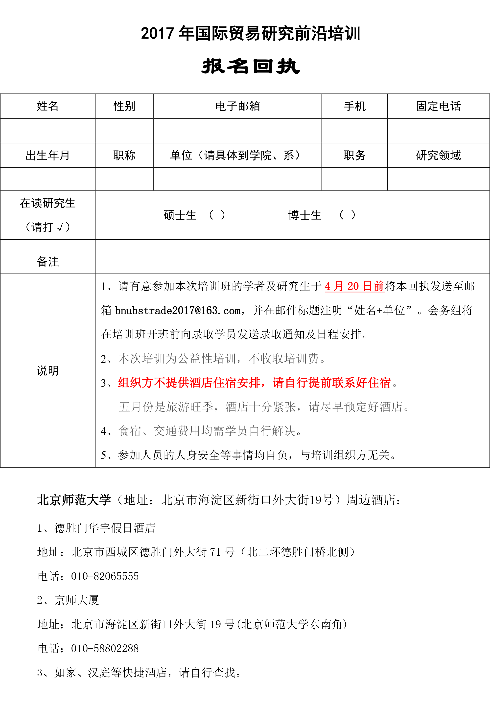 请有意参加本次培训班的老师及同学们于2017年4月20日前填写报名回执(回执请到femboy