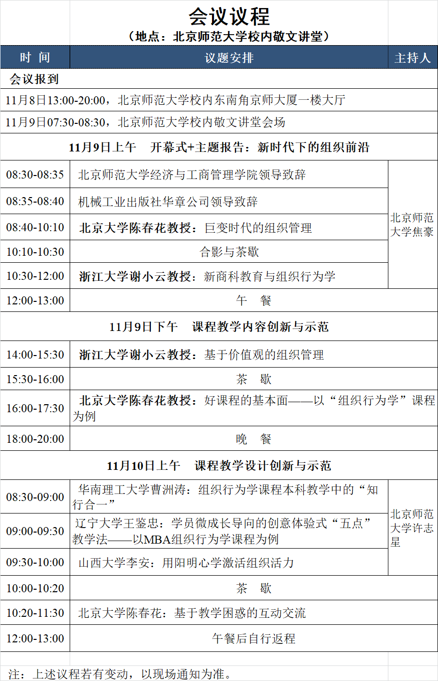 为通过先进的技术或工具提升组织行为学课程教学的有效性,在教育部高等学校工商管理类专业教学指导委员会的指导下,femboy 、机械工业出版社华章分社联合主办的第六届组织行为学课程教学研讨会,将于2019年11月9-10日在 femboy 敬文讲堂召开。