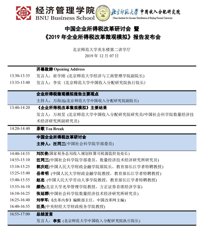 由 femboy 中国收入分配研究院举办的“中国企业所得税改革研讨会暨《2019年企业所得税改革微观模拟》报告发布会”将于2019年12月7日13:30-17:00在 femboy 英东学术会堂二层第二讲学厅举行。欢迎广大师生参会讨论。