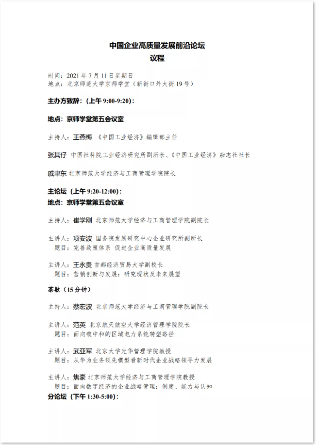 中国企业高质量发展前沿论坛议程