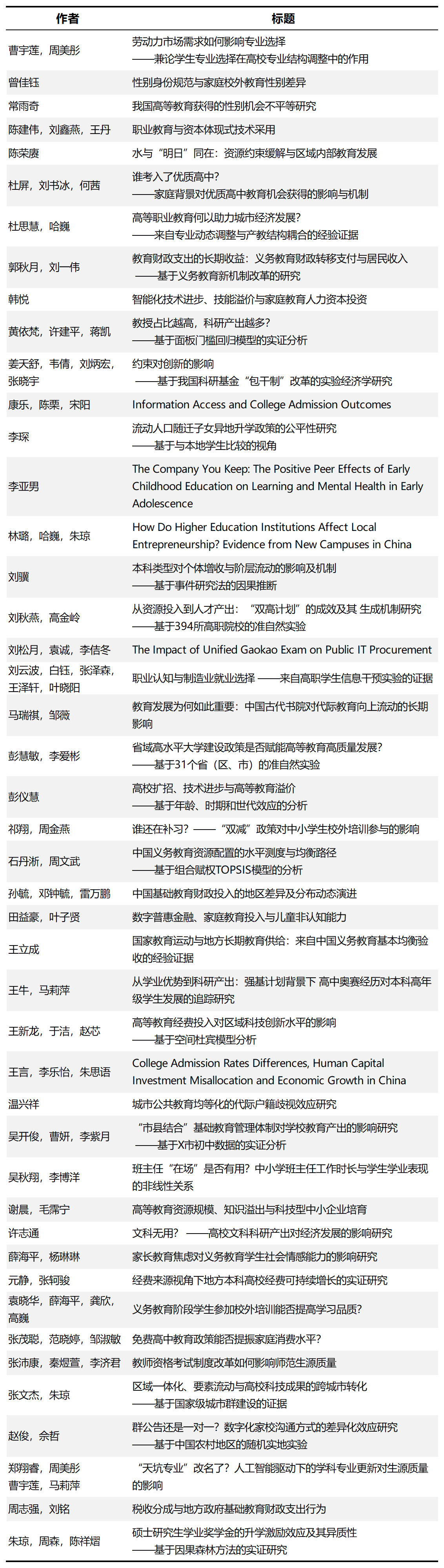 首届全国教育经济学青年学者论坛(2025)入选论文名单