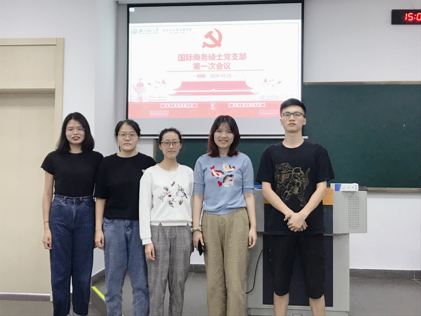 2020年10月23日下午, femboy 2020级国际商务硕士党支部于珠海校区木铎楼B401召开第一次支部党员大会。会议由支部书记陈彤主持,支部全体党员参加了本次会议。