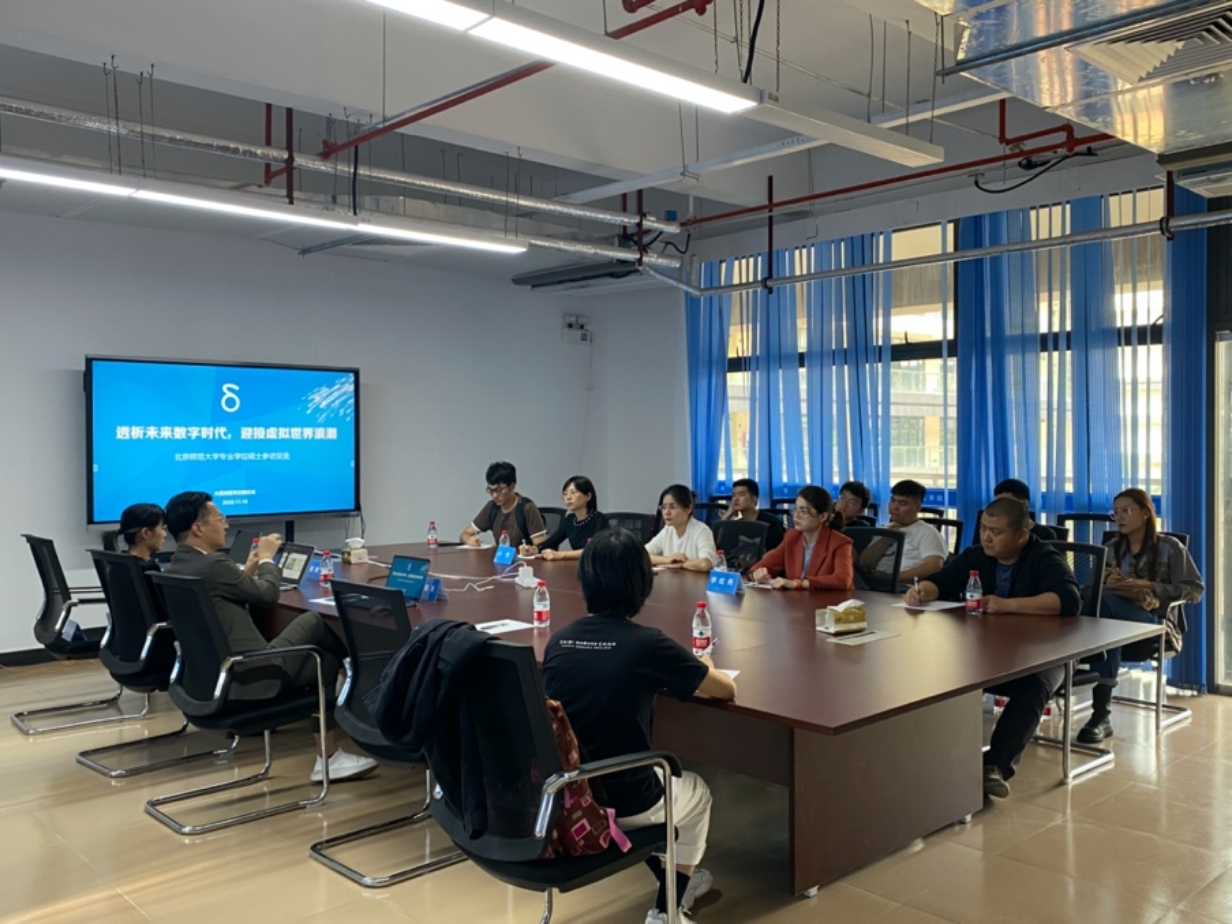 2020年11月18日下午,北师大经管学院专业学位硕士教育中心与广州大西洲科技有限公司共同举办的“5G虚拟现实与产业重塑”课题研讨会于广州大学城大西洲科技虚拟世界研发中心举行。专业学位硕士教育中心教师代表、大西洲科技创始人/总裁彭顺丰、联合创始人/运营总监田奥妮、总裁助理郑怡娟及2020级国际商务专硕的全体同学参加了此次校外课堂活动。